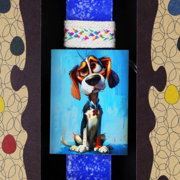 Ένα βλέμμα που λιώνει καρδιές! Λαμπάδα 20εκ. με καλλιτεχνικό μαγνητάκι σκύλου 8×6εκ. σε μπλε-λευκή σύνθεση. Ταιριάζει ιδανικά σε παιδιά και εφήβους που αγαπούν τα κατοικίδια και θέλουν κάτι διαφορετικό από τα συνηθισμένα. Σταθερό δέσιμο, προσεγμένη λεπτομέρεια και οικολογική συσκευασία.