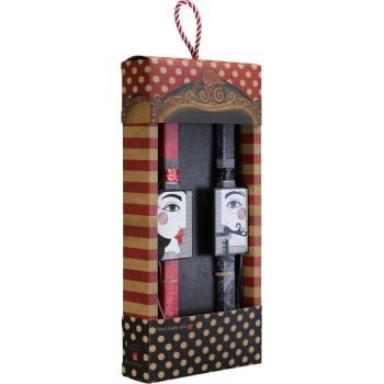 Δύο λαμπάδες σε μια συσκευασία ιδανική για την μοιραστείτε με το έτερον ήμισυ. Είναι διακοσμημένες με μαγνητάκια με φιγούρες τραπουλόχαρτου ανδρικές και γυναικείες. Τα υλικά διακόσμησης είναι υψηλής ποιότητας και εισάγονται αποκλειστικά από την SYNCHRONIA. Τα αντικείμενα σχεδιάζονται ή επιλέγονται για την αισθητική, την αυθεντικότητα, την φιλικότητα προς το περιβάλλον και το δίκαιο εμπόριο. • Το κερί είναι αρωματικό, χειροποίητο και κατασκευάζεται στην Ελλάδα • Περιλαμβάνεται η εντυπωσιακή συσκευασία δώρου με ποτηράκι για το κερί • Ύψος λαμπάδας: 30εκ. • Μέγεθος συσκευασίας: 20x5,5x40 εκ.
