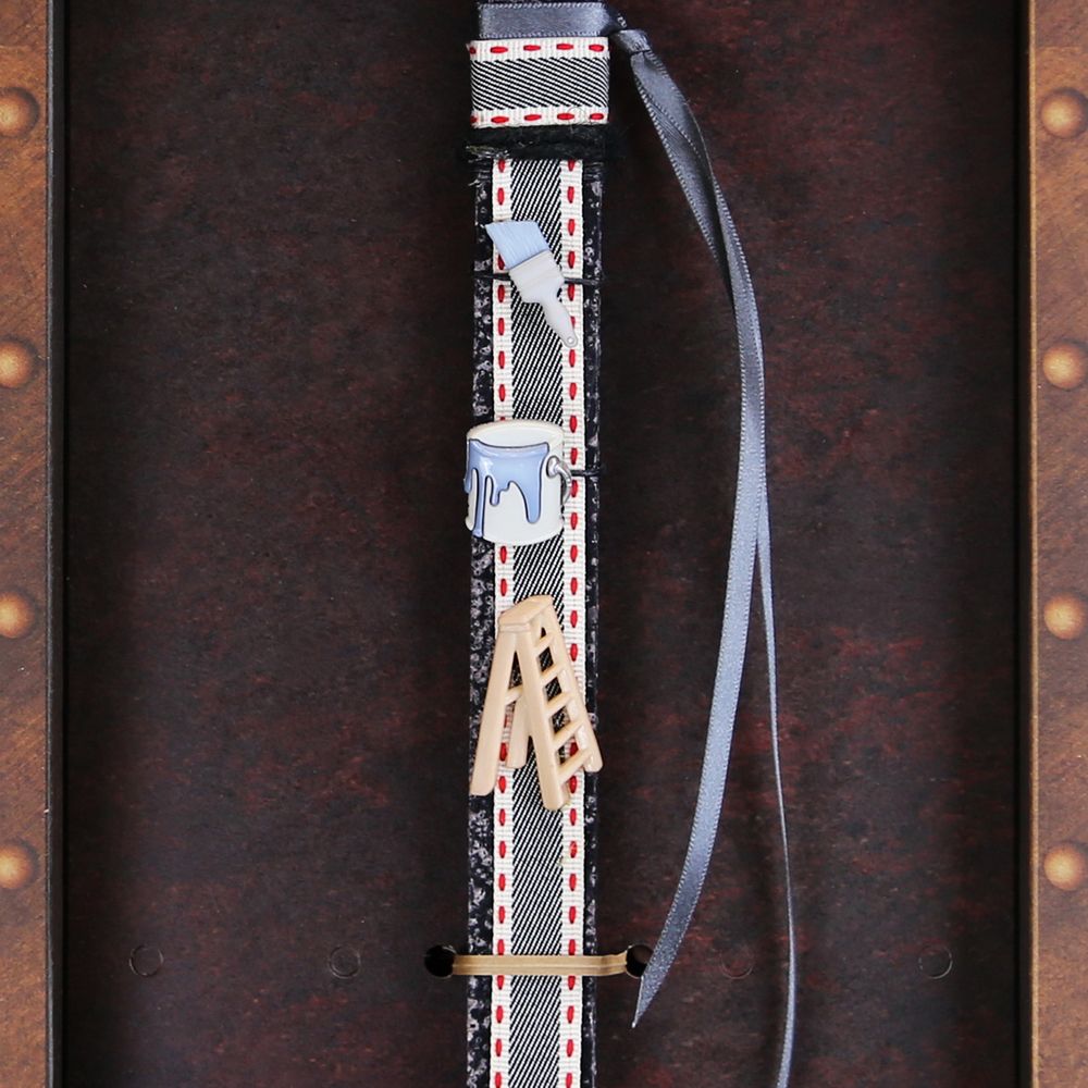 Ξυλουργοί, ελαιοχρωματιστές, μηχανικοί και όλοι όσοι μαστορεύουν θα την αγαπήσουν! Πασχαλινή λαμπάδα διακοσμημένη με κουμπιά που είναι σφυριά, σκάλες, κατσαβίδια και μπορείτε να τα χρησιμοποιήσετε αφού κάψετε την λαμπάδα. Τα υλικά διακόσμησης είναι υψηλής ποιότητας και εισάγονται αποκλειστικά από την SYNCHRONIA. Τα αντικείμενα σχεδιάζονται ή επιλέγονται όχι μόνο για την αισθητική αλλά και για την αυθεντικότητα, την φιλικότητα προς το περιβάλλον και το δίκαιο εμπόριο. • Το κερί είναι αρωματικό, χειροποίητο και κατασκευάζεται στην Ελλάδα • Περιλαμβάνεται η πρωτότυπη συσκευασία δώρου με ποτηράκι για το κερί • Ύψος λαμπάδας: 30εκ.• Μέγεθος συσκευασίας: 20x5,5x40 εκ.