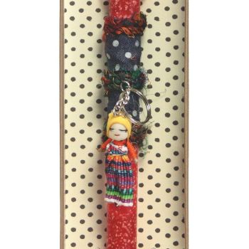 Διακοσμημένη με μπρελόκ worry doll από την Γουατεμάλα. Σύμφωνα με τον μύθο των Μάγιας οι κούκλες αυτές μπορούν να πάρουν τις στενοχώριες από τους ανθρώπους. Το κερί είναι αρωματικό, χειροποίητο και κατασκευάζεται στην Ελλάδα. Τα υλικά διακόσμησης είναι υψηλής ποιότητας και εισάγονται αποκλειστικά από την SYNCHRONIA. Τα αντικείμενα σχεδιάζονται ή επιλέγονται όχι μόνο για την αισθητική αλλά και για την αυθεντικότητα, την φιλικότητα προς το περιβάλλον και το δίκαιο εμπόριο. Η βάση προβολής και το εξωτερικό κουτί δώρου περιλαμβάνονται. Ύψος λαμπάδας: 30εκ.