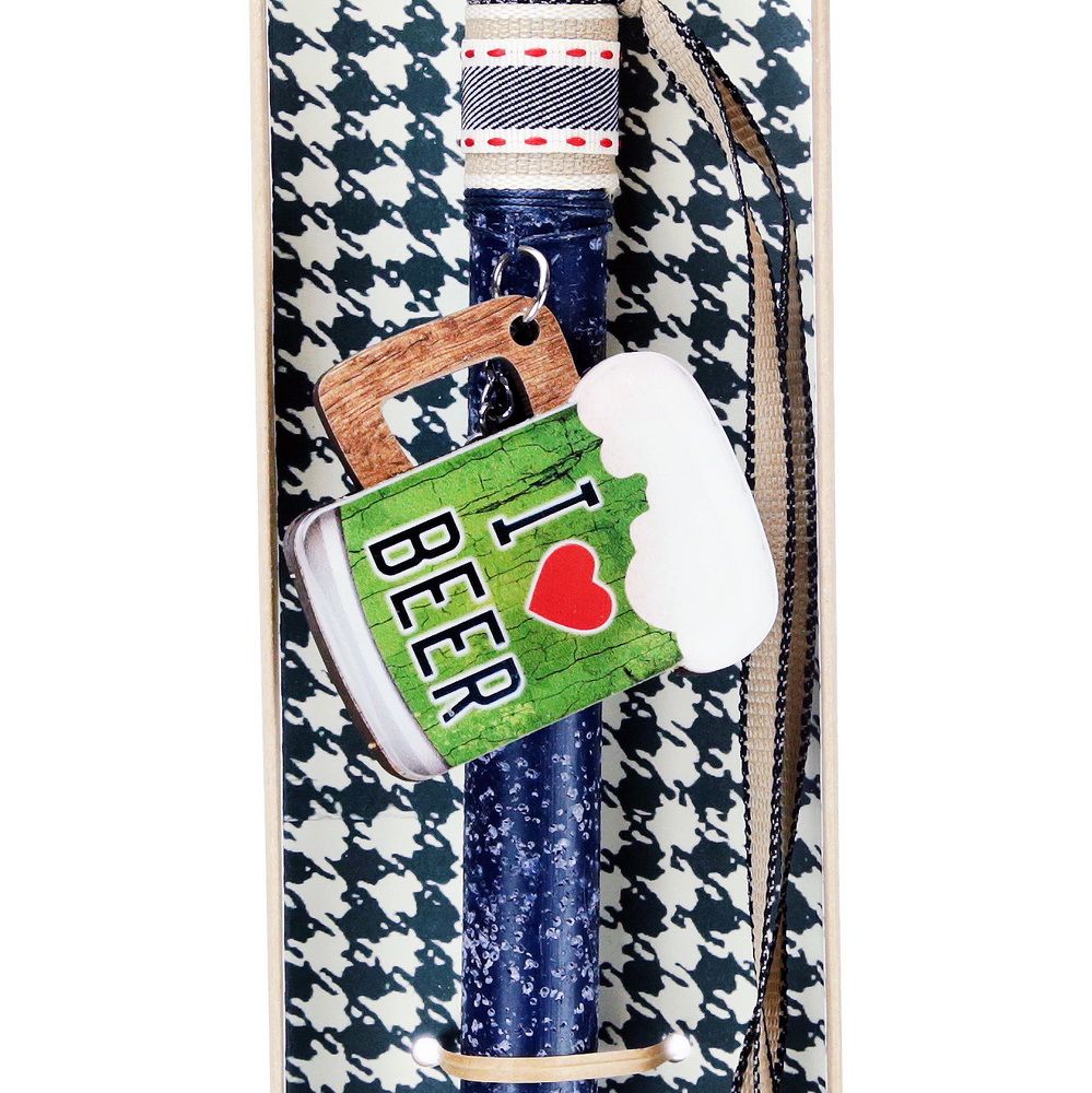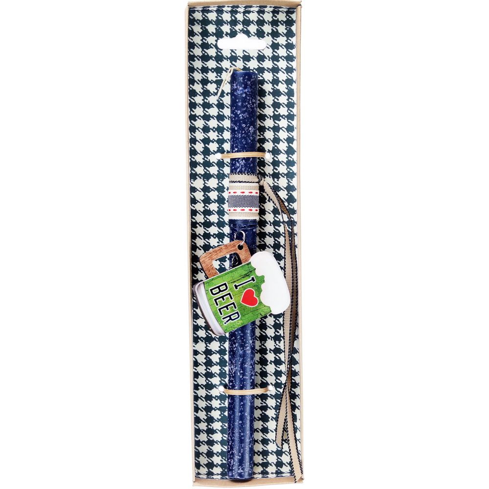 Πασχαλινή λαμπάδα για τους λάτρες της μπύρας! Ένα τέλειο μπρελόκ σε σχήμα ποτηριού μπύρας που θα μείνει μετά το Πάσχα για να κρεμάσετε τα κλειδιά σας. Είναι ξύλινη βάση και έχει επίστρωση από ακρυλικό. Διαλέξτε από τα πολλά διαφορετικά σχέδια. Τα υλικά διακόσμησης είναι υψηλής ποιότητας και εισάγονται αποκλειστικά από την SYNCHRONIA. Τα αντικείμενα σχεδιάζονται ή επιλέγονται όχι μόνο για την αισθητική αλλά και για την αυθεντικότητα, την φιλικότητα προς το περιβάλλον και το δίκαιο εμπόριο. • Το κερί είναι αρωματικό, χειροποίητο και κατασκευάζεται στην Ελλάδα • Περιλαμβάνεται η πρωτότυπη συσκευασία δώρου με ποτηράκι για το κερί • Ύψος λαμπάδας: 30εκ.