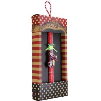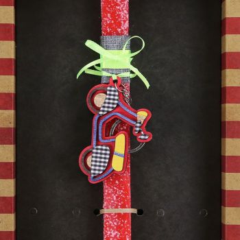 Πασχαλινή λαμπάδα με μπρελόκ σκούτερ με φοβερά χρώματα και μοτίβα. Αφού κάψετε την υπέροχη λαμπάδα, θα το βάλετε στα κλειδιά σας. Τα υλικά διακόσμησης είναι υψηλής ποιότητας και εισάγονται αποκλειστικά από την SYNCHRONIA. Τα αντικείμενα σχεδιάζονται ή επιλέγονται όχι μόνο για την αισθητική αλλά και για την αυθεντικότητα, την φιλικότητα προς το περιβάλλον και το δίκαιο εμπόριο. • Το κερί είναι αρωματικό, χειροποίητο και κατασκευάζεται στην Ελλάδα • Περιλαμβάνεται η πρωτότυπη συσκευασία δώρου με ποτηράκι για το κερί • Ύψος λαμπάδας: 30εκ.• Μέγεθος συσκευασίας: 20x5,5x40 εκ.