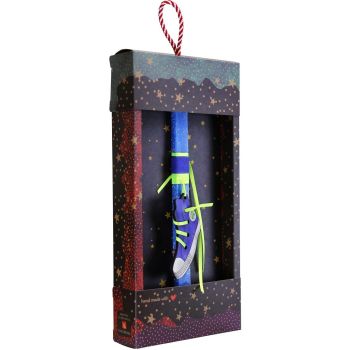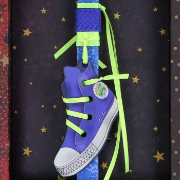 Χειροποίητη Πασχαλινή λαμπάδα Διακοσμημένη με ένα παπούτσι τύπου allstar. Το κερί είναι αρωματικό, χειροποίητο και κατασκευάζεται στην Ελλάδα. Τα υλικά διακόσμησης είναι υψηλής ποιότητας και εισάγονται αποκλειστικά από την SYNCHRONIA. Τα αντικείμενα σχεδιάζονται ή επιλέγονται όχι μόνο για την αισθητική αλλά και για την αυθεντικότητα, την φιλικότητα προς το περιβάλλον και το δίκαιο εμπόριο. Η βάση προβολής και το εξωτερικό κουτί δώρου περιλαμβάνονται. Ύψος λαμπάδας: 30εκ.• Μέγεθος συσκευασίας: 20x5,5x40 εκ.
