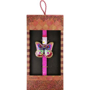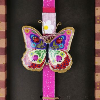Λαμπάδα Πεταλούδα φλοράλ - Φούξια