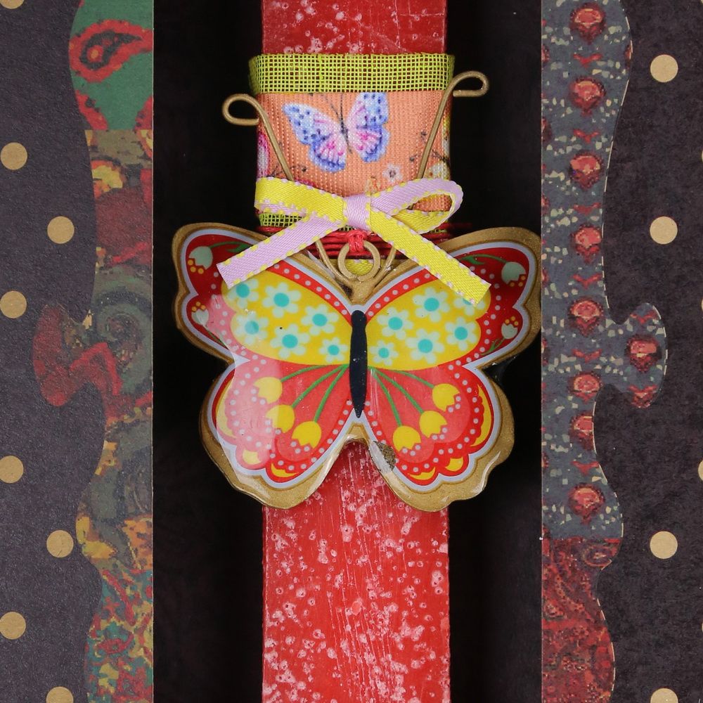 Λαμπάδα Πεταλούδα φλοράλ μικρή - κόκκινο