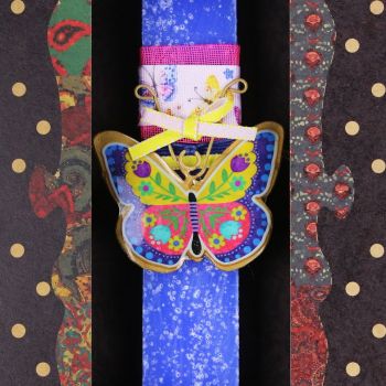 Λαμπάδα Πεταλούδα φλοράλ μικρή - μπλε