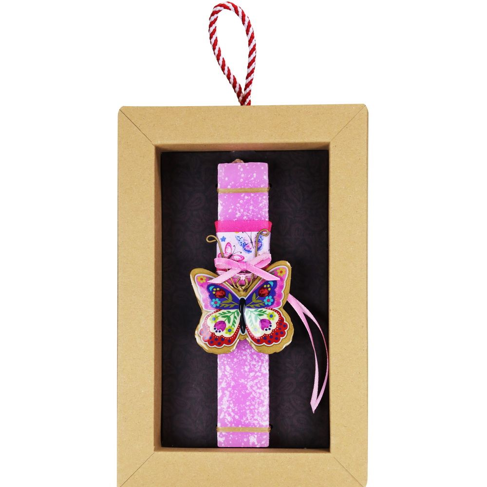 Λαμπάδα Πεταλούδα φλοράλ μικρή - ροζ