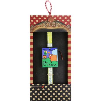 Χειροποίητη Πασχαλινή λαμπάδα Διακοσμημένη με πίνακες που αναφέρονται σε διάσημους ζωγράφους. Το κερί είναι αρωματικό, χειροποίητο και κατασκευάζεται στην Ελλάδα. Τα υλικά διακόσμησης είναι υψηλής ποιότητας και εισάγονται αποκλειστικά από την SYNCHRONIA. Τα αντικείμενα σχεδιάζονται ή επιλέγονται όχι μόνο για την αισθητική αλλά και για την αυθεντικότητα, την φιλικότητα προς το περιβάλλον και το δίκαιο εμπόριο. Η βάση προβολής και το εξωτερικό κουτί δώρου περιλαμβάνονται. Ύψος λαμπάδας: 30εκ.• Μέγεθος συσκευασίας: 20x5,5x40 εκ.