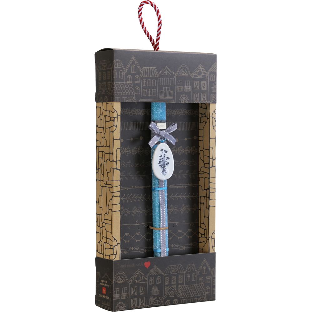 Λαμπάδα διακοσμημένη ένα υπέροχο αυγό από λευκή πορσελάνη με εγχάρακτα σχέδια και μηνύματα και από τις δύο πλευρές. Στο κερί μια ξύλινη ταμπελίτσα με ένα μήνυμα και υπέροχες κορδέλες ολοκληρώνουν αυτή την μοναδική λαμπάδα. Θα την βρείτε σε 5 εκδοχές για να επιλέξετε. Τα υλικά διακόσμησης είναι υψηλής ποιότητας και εισάγονται αποκλειστικά από την SYNCHRONIA. Τα αντικείμενα σχεδιάζονται ή επιλέγονται για την αισθητική, την αυθεντικότητα, την φιλικότητα προς το περιβάλλον και το δίκαιο εμπόριο. • Το κερί είναι αρωματικό, χειροποίητο και κατασκευάζεται στην Ελλάδα • Περιλαμβάνεται η εντυπωσιακή συσκευασία δώρου με ποτηράκι για το κερί • Ύψος λαμπάδας: 30εκ. • Μέγεθος συσκευασίας: 20x5,5x40 εκ.