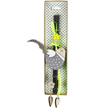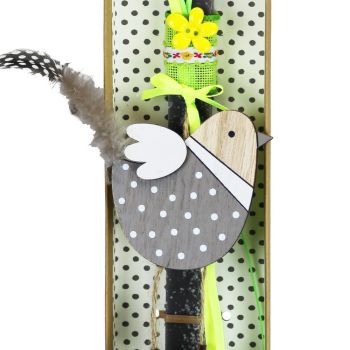 Πασχαλινή λαμπάδα διακοσμημένη με ένα χαριτωμένο ξύλινο πουλάκι με ρουστίκ λεπτομέρειες. Τα υλικά διακόσμησης είναι υψηλής ποιότητας και εισάγονται αποκλειστικά από την SYNCHRONIA. Τα αντικείμενα σχεδιάζονται ή επιλέγονται για την αισθητική, την αυθεντικότητα, την φιλικότητα προς το περιβάλλον και το δίκαιο εμπόριο. • Το κερί είναι αρωματικό, χειροποίητο και κατασκευάζεται στην Ελλάδα • Περιλαμβάνεται η πρωτότυπη συσκευασία δώρου με ποτηράκι για το κερί • Ύψος λαμπάδας: 30εκ. • Μέγεθος συσκευασίας: 12x5x34 εκ.