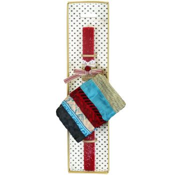 Πασχαλινή λαμπάδα διακοσμημένη με χειροποίητο τσαντάκι από ανακύκλωση μεταξωτών σάρι. Τα χρώματα είναι μοναδικά και είναι όλα υπέροχα! Η φωτογραφία έχει κάποια ενδεικτικά σχέδια. Τα υλικά διακόσμησης είναι υψηλής ποιότητας και εισάγονται αποκλειστικά από την SYNCHRONIA. Τα αντικείμενα σχεδιάζονται ή επιλέγονται για την αισθητική, την αυθεντικότητα, την φιλικότητα προς το περιβάλλον και το δίκαιο εμπόριο. • Το κερί είναι αρωματικό, χειροποίητο και κατασκευάζεται στην Ελλάδα • Περιλαμβάνεται η πρωτότυπη συσκευασία δώρου με ποτηράκι για το κερί • Ύψος λαμπάδας: 30εκ. • Μέγεθος συσκευασίας: 12x5x34 εκ.