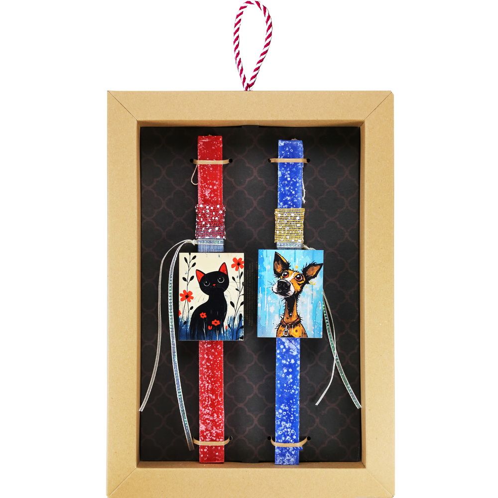 Λαμπάδα Ζευγάρι Γάτα Σκύλος - Κόκκινο-Μπλε